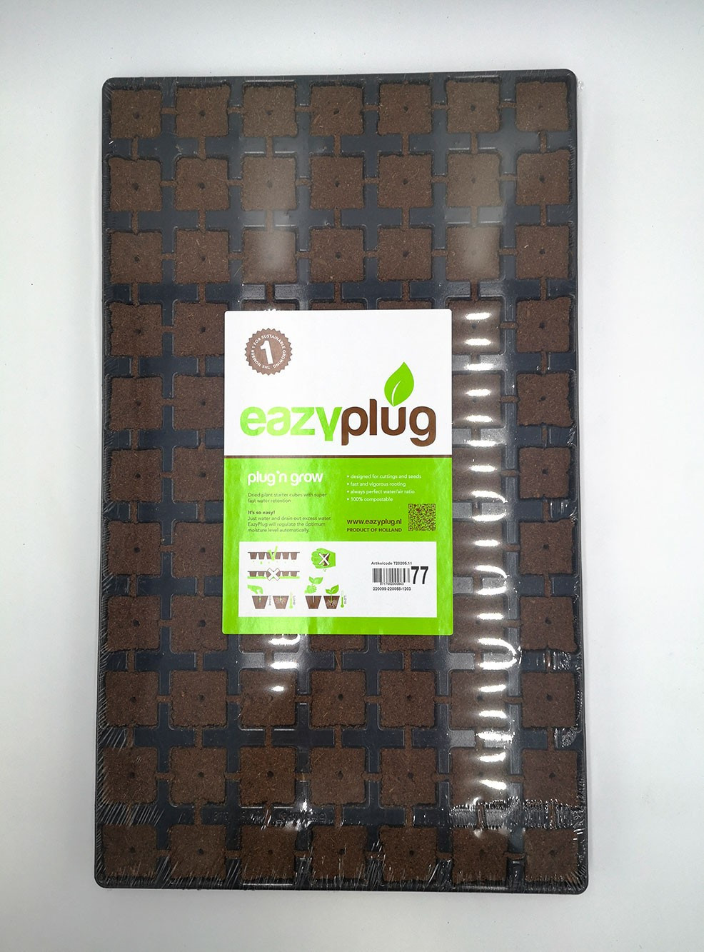 Fournis sous forme déshydratée, les Eazy Plug 77 cubes offrent de nombreux avantages : poids réduit, durée de conservation quasi illimitée, absence totale de champignons, et une absorption rapide de l’eau en moins d’une minute. Leur pH stabilisé à 5,8 et leur conductivité faible (1 mS/cm) créent un environnement idéal pour un démarrage optimal des plantes.