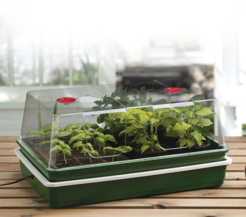 Le couvercle transparent ventilé, doté d’une ouverture réglable, permet de contrôler l’humidité tout en laissant passer un maximum de lumière. Son dégagement total de 15 cm offre suffisamment d’espace pour accompagner la croissance des plantules sans stress.