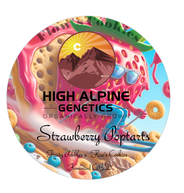 Strawberry Poptarts de High Alpine Genetics est une variété Type 3 CBD, issue des croisements entre Fruity Pebbles et Flow's Cookies, avec un taux élevé de CBD et faible en THC.