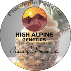 Pineapple Snowcone est une variété Type 3 CBD (< 0,3 % THC) signée High Alpine Genetics, née d’un croisement de Payton's Lemon's x Pineapple Pudding pour offrir des fleurs aux arômes tropicaux puissants et à la culture fiable.