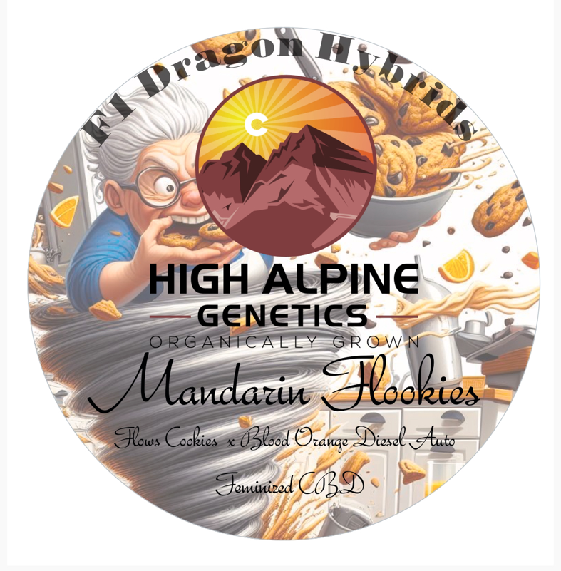 Mandarin Flookies, variété féminisée CBD (< 0,3 % THC), proposée par High Alpine Genetics est le résultat du croisement Flow’s Cookies × Blood Orange Diesel Auto.
